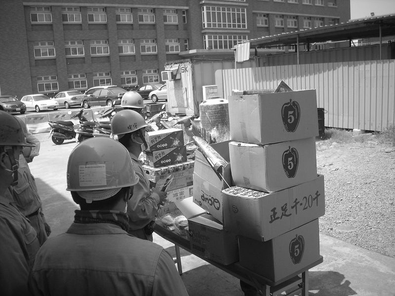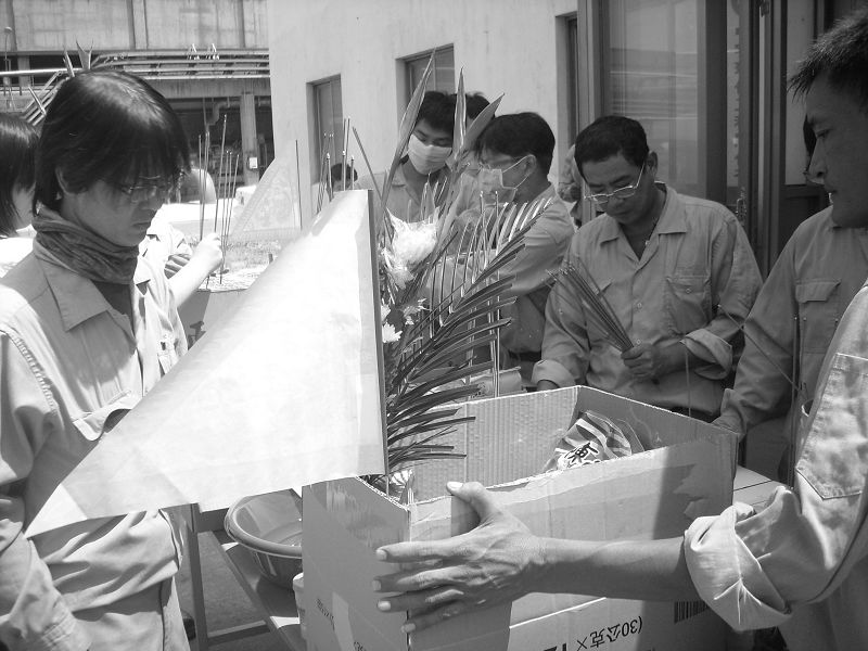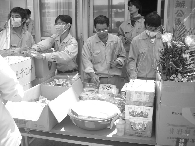 隔天在我跑去拍圓滿教堂跟921紀念園區時,已經開始了刮臂的製作工作。